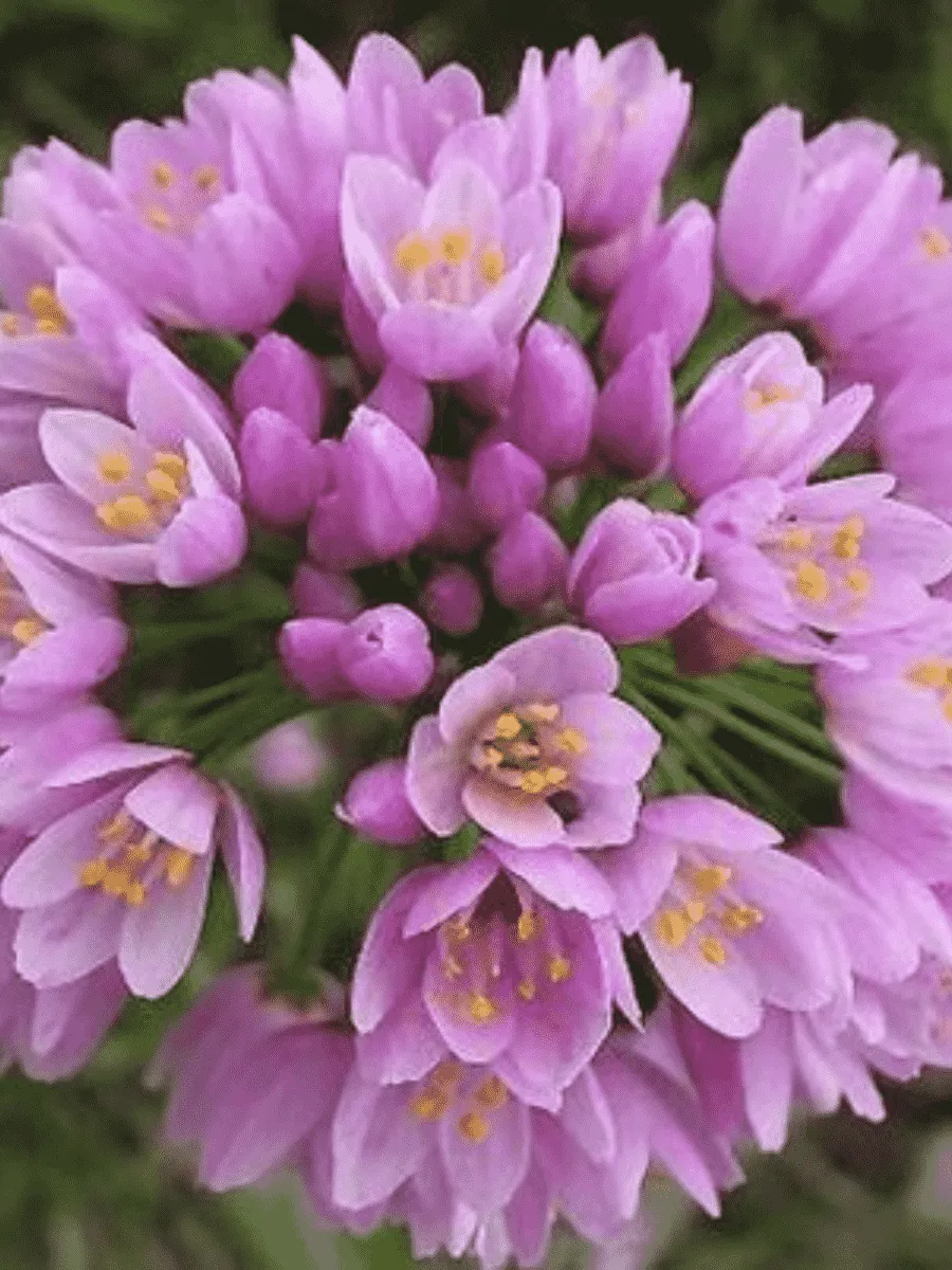 Лук декоративный *Roseum* — изысканное растение семейства Амариллисовые (Amaryllidaceae), покоряющее сердца садоводов нежностью цветения и утончённостью облика. Его узколанцетные листья образуют пышную розетку, словно зелёная волна, мягко струящаяся над поверхностью почвы. Листья гладкие, насыщенно-зелёные, слегка воскового оттенка, подчёркивающие элегантность формы. Цветонос появляется ранней весной, поднимаясь стройной свечкой среди зелени листвы. Бутоны раскрываются постепенно, превращаясь в очаровательные нежно-розовые звёздочки, собранные в рыхлые зонтичные соцветия. Лепестки цветков тонкие, полупрозрачные, будто сотканные из утренней дымки, источают едва уловимый аромат свежести и чистоты. Растёт лук декоративный компактно, формируя аккуратные кустики высотой до 45 см, предпочитая солнечные места и плодородные дренированные почвы. Прекрасно смотрится в рокариях, миксбордерах и альпинариях, украшая садовый пейзаж своей природной грацией и очарованием.