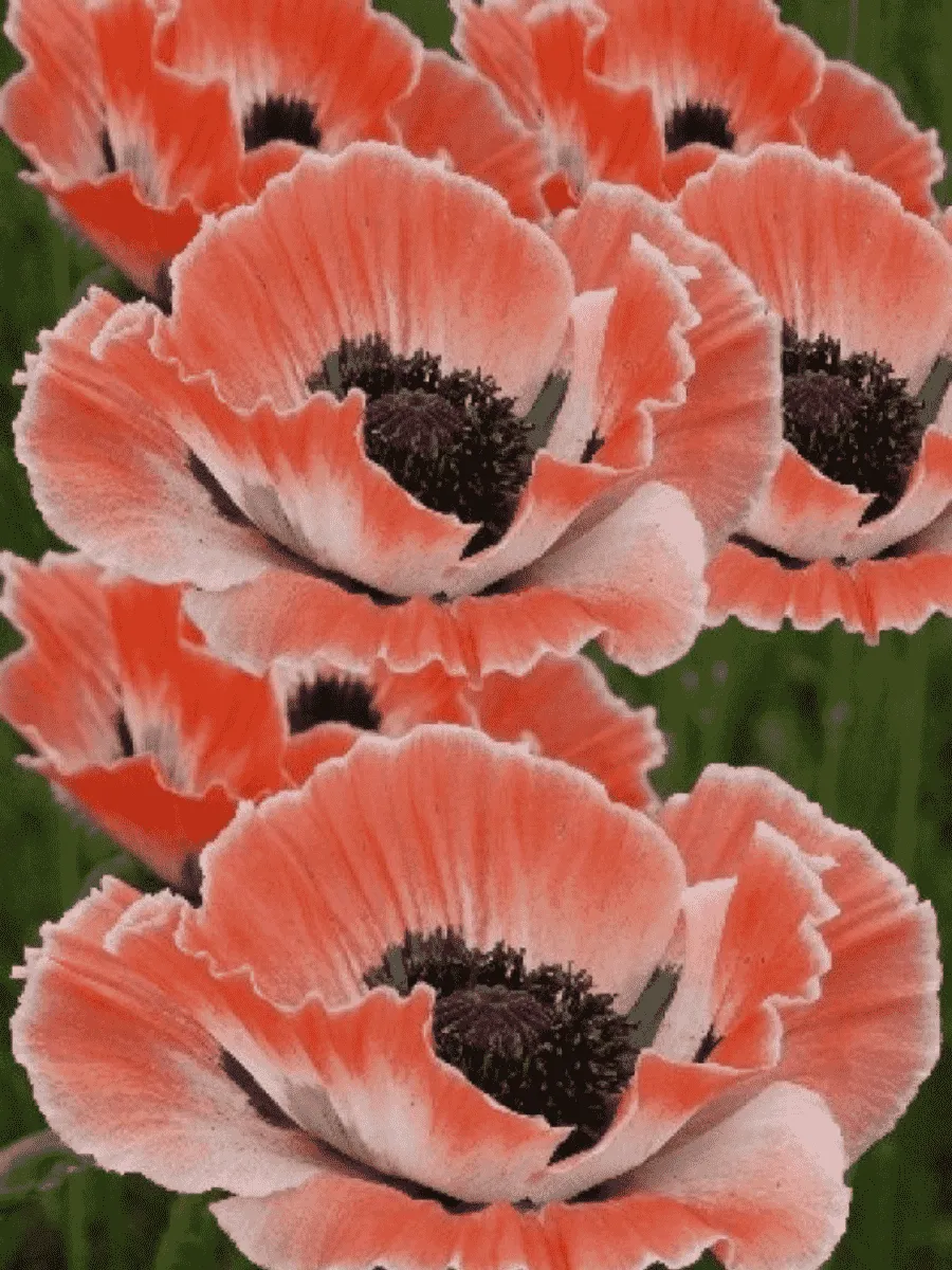Мак восточный сорта *Carnival* пленяет взор роскошью цветения и утончённостью форм. Его крепкий стебель высотой до метра украшен крупными рассечёнными листьями насыщенного зелёного цвета, словно вырезанными искусной рукой мастера. Цветки раскрываются пышными бутонами диаметром около десяти сантиметров, демонстрируя всю палитру оттенков от нежнейшего розового до глубокого пурпурного, иногда переходящего в бархатистый чёрный тон. Лепестки тонкие, полупрозрачные, слегка волнистые по краям, создают впечатление лёгкости и воздушности. Сердцевина цветка подчёркнута контрастными тычинками золотистого оттенка, придающими особую изысканность композиции. Растёт мак преимущественно на солнечных участках, предпочитая плодородную почву и умеренный полив. Период цветения длится несколько недель, превращая сад в живописную картину, полную ярких красок и очарования природы.