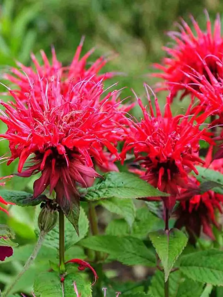Монарда двойчатая сорта *Panorama Red* пленяет взор своей изысканной красотой и благородством форм. Это многолетнее травянистое растение достигает высоты от полуметра до метра, обладая прямостоячими крепкими стеблями, покрытыми мелкими волосками. Листья насыщенно-зелёного цвета, продолговато-яйцевидные, слегка зубчатые по краям, источают приятный аромат, особенно ощутимый после дождя или лёгкого прикосновения. Цветки собраны в крупные яркие соцветия-термиты, возвышающиеся над листвой подобно огненным факелам, окрашены в глубокий рубиново-красный оттенок, привлекающий внимание насекомых-опылителей своим ярким контрастом среди зелёной массы сада. Период цветения продолжительный, начинается в середине лета и длится вплоть до первых осенних заморозков, украшая собой клумбы и миксбордеры, создавая атмосферу тепла и радости даже в пасмурную погоду. Растёт быстро, легко размножается делением корневища, устойчива к болезням и неприхотлива в уходе, предпочитая солнечные места и умеренно влажные почвы.