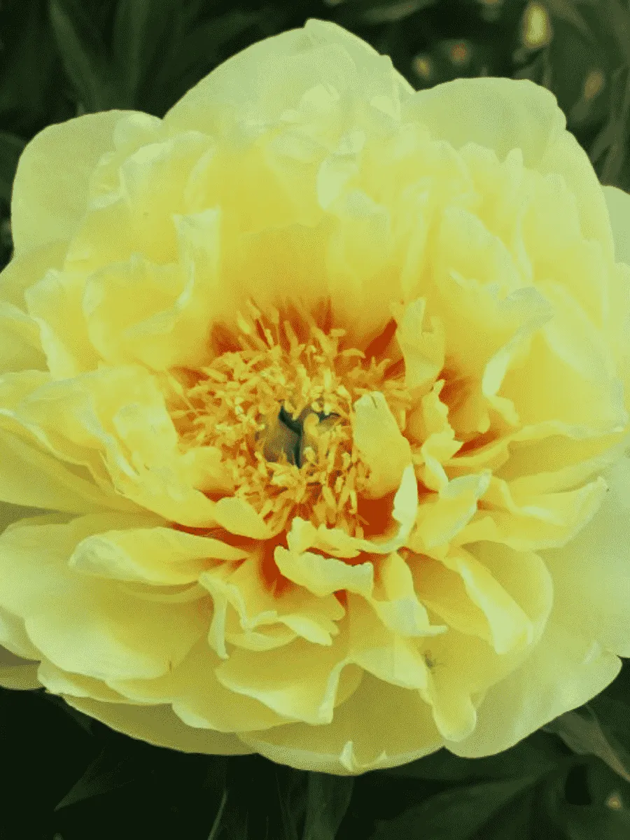 Пион ИТО-сорта *Yellow Waterlily* представляет собой роскошную садовую культуру, сочетающую элегантность травянистых пионов и мощь древовидных видов. Его крупные листья насыщенно-зелёного цвета имеют характерную рассечённую форму, создавая живописную ажурную крону. Цветки поражают своей изысканностью: широкие лепестки нежнейшего лимонно-жёлтого оттенка плавно переходят от центра цветка к краям, словно отражаясь в зеркальной глади воды. Бутоны раскрываются постепенно, демонстрируя постепенное раскрытие своего великолепия. Высота взрослого куста достигает около метра, позволяя растению уверенно занимать центральное место в композиции сада. Этот пион отличается устойчивостью к болезням и неприхотливостью в уходе, радуя садоводов продолжительным периодом цветения и способностью сохранять декоративность до поздней осени.