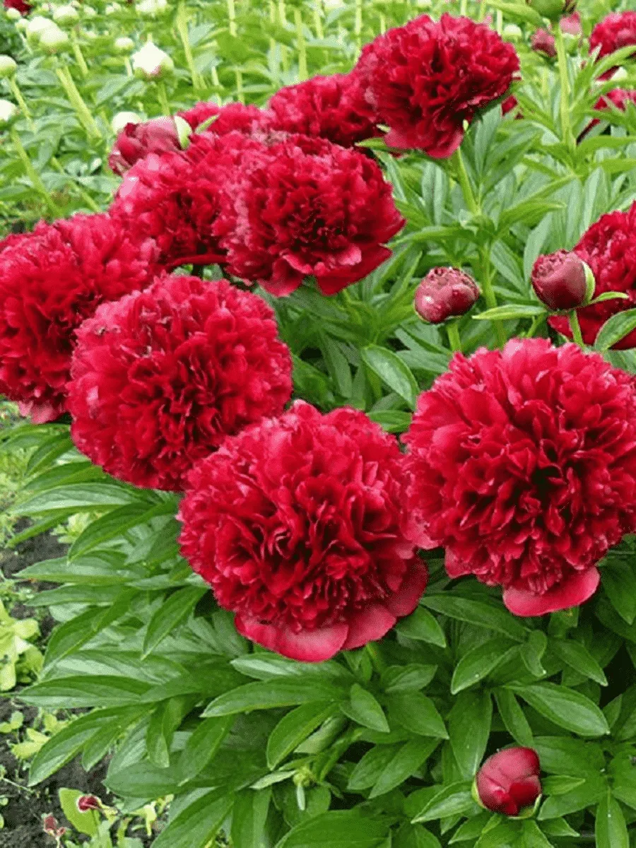 Пион молочноцветковый 'Red Charm' пленяет взор роскошной красотой крупных махровых цветков насыщенного рубинового оттенка, словно драгоценная брошь среди зелени сада. Его лепестки нежны и бархатисты, слегка отгибаясь наружу, открывают взору золотистую сердцевину, сверкающую солнечными бликами. Листья крупные, рассечённые, тёмно-зелёные, глянцевые, придают растению благородную строгость и подчёркивают изысканность соцветий. Высота куста достигает одного метра, создавая пышный зелёный фон, который весной превращается в великолепие ярких цветов. Цветёт обильно и продолжительно, начиная с конца мая до середины июня, наполняя пространство тонким ароматом, напоминающим сладость ванили и свежесть луговых трав. Растение предпочитает солнечные места, плодородные почвы и умеренный полив, прекрасно адаптируется к климатическим условиям средней полосы России, радуя садоводов своей неприхотливостью и долговечностью.