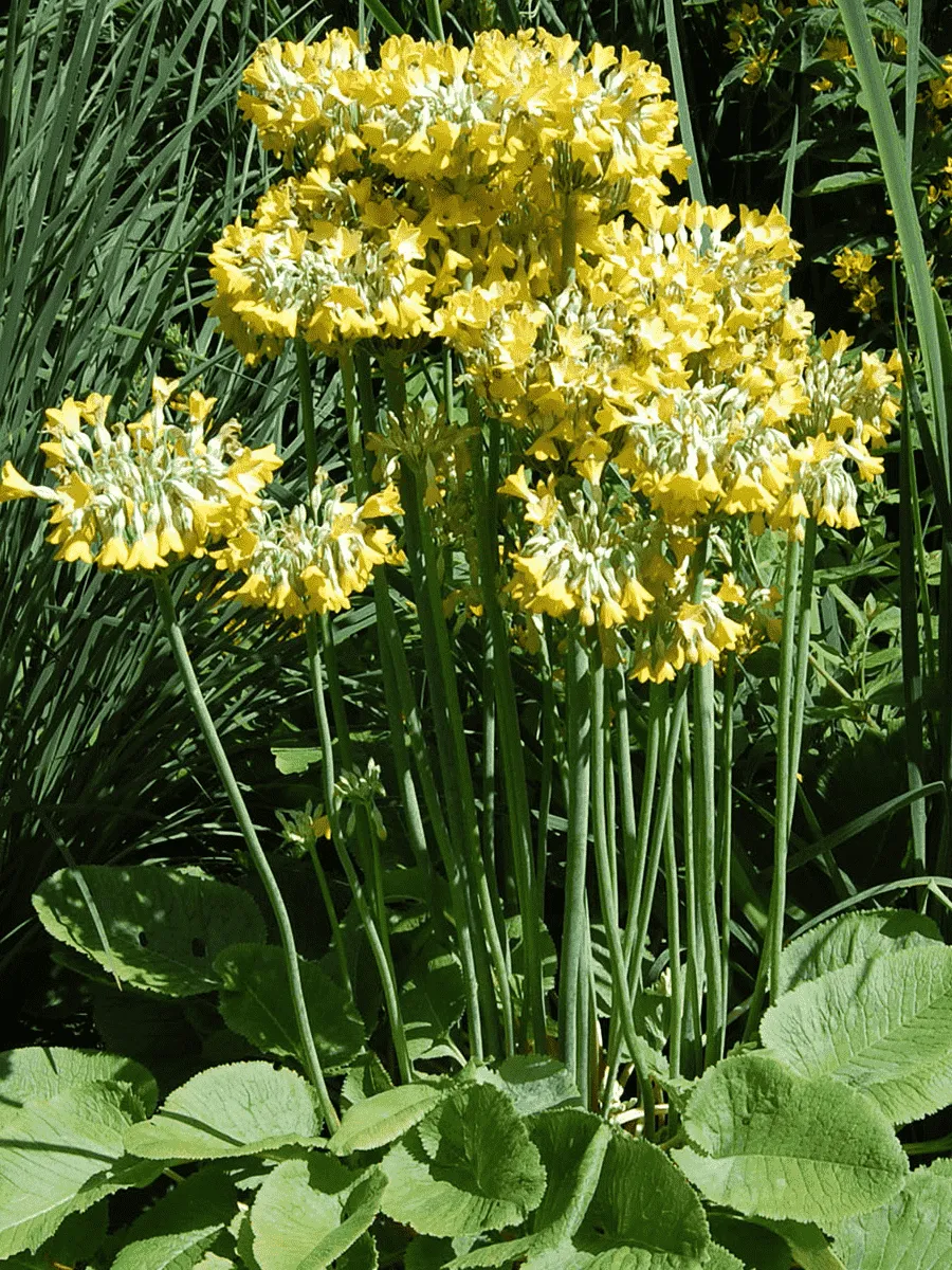 Примула флоринды — очаровательное травянистое растение родом из горных районов Китая, покоряет сердца садоводов нежностью своего облика и изысканностью цветения. Стройная розетка крупных сердцевидных листьев, покрытых бархатистым пушком, словно создана природой специально для восхищённых взглядов. Листья тёмно-зелёные, слегка волнистые по краям, придают растению благородную строгость и одновременно подчёркивают хрупкость стеблей, увенчанных крупными колокольчатыми цветами. Цветки примулы флоринды раскрываются ранней весной, когда природа ещё погружена в сон, создавая яркие островки цвета среди серых оттенков зимнего пейзажа. Их лепестки окрашены в насыщенные оттенки жёлтого, оранжевого и красного цветов, переливаясь солнечными бликами и привлекая внимание своей живописной палитрой. Растёт примула флоринды преимущественно на влажных лугах и лесных полянах, предпочитая полутень и плодородные почвы, где её цветы распускаются особенно пышно и долго радуют глаз своим великолепием.