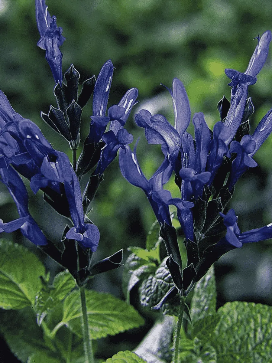 Шалфей Black and Blue очаровывает своей элегантностью и утончённостью, представляя собой многолетнее травянистое растение с прямостоячими стеблями высотой до полуметра. Листья крупные, овально-ланцетной формы, слегка морщинистые, покрыты нежным пушком, придающим им бархатистость и серебристо-зелёную окраску. Цветки собраны в плотные колосовидные соцветия, поражающие контрастом тёмно-фиолетовых венчиков и ярко-синих трубочек, словно драгоценная палитра художника, вдохновлённого природой. Период цветения продолжительный, начинается в июне и длится до конца лета, привлекая пчёл и бабочек своим ароматом и красотой. Растёт шалфей неприхотливо, предпочитает солнечные места и хорошо дренированные почвы, легко адаптируясь к различным условиям произрастания и украшая сады изысканным акцентом среди зелёного массива растений.