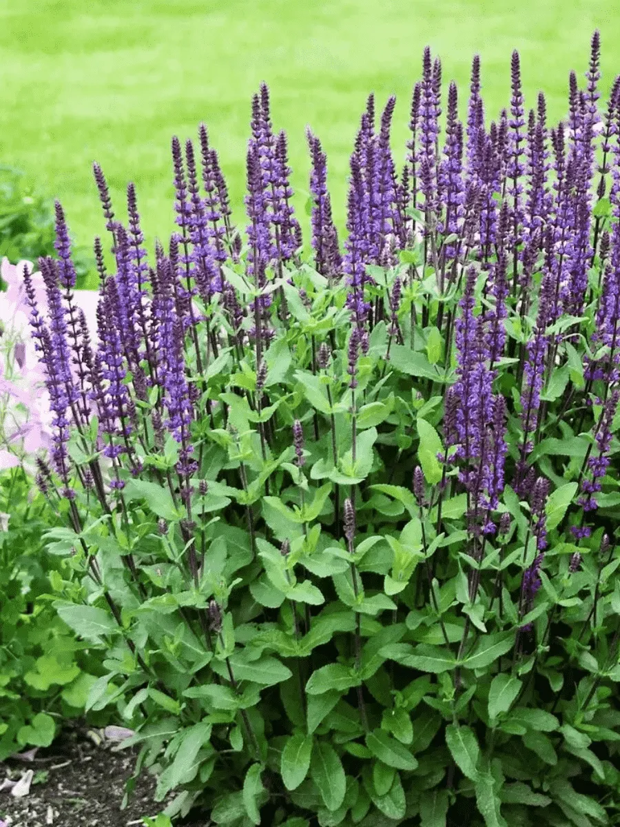 Шалфей дубравный сорта *Caradonna Compact* пленяет взор своей утончённой красотой и благородством форм. Это компактное растение высотой около полуметра обладает прямостоячими стеблями, покрытыми нежной бархатистостью, словно обласканными ласковым дыханием ветра. Листья шалфея тёмно-зелёные, слегка морщинистые, овальной формы с зубчатым краем, источают тонкий аромат, наполняющий воздух свежестью лесной чащи. Но истинная прелесть раскрывается во время цветения: многочисленные соцветия состоят из густых колосовидных кистей, украшенных мелкими трубчатыми цветами насыщенного пурпурно-фиолетового оттенка, будто драгоценные камни, сверкающие среди зелени. Цветение продолжается долго, радуя глаз яркими красками всё лето до осени. Растёт шалфей быстро, легко адаптируется к различным условиям, предпочитая солнечные места и умеренно плодородную почву, становясь украшением садов и парков, где царит гармония природы и искусства.