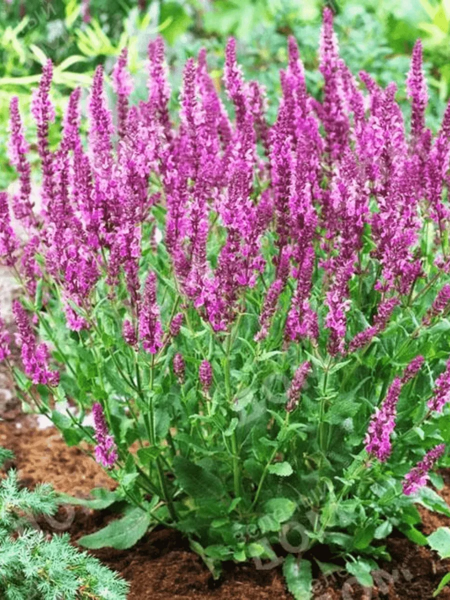 Шалфей дубравный сорта *Sensation Rose* пленяет взор нежностью пастельных оттенков и утончённой красотой соцветий. Это многолетнее растение достигает высоты около полуметра, формируя компактную кустистую крону с прямыми прочными стеблями. Листья шалфея овально-ланцетной формы, слегка морщинистые, покрыты мягким пушком, придающим им бархатистость и серебристо-зелёный оттенок. Цветки собраны в длинные колосовидные кисти, возвышающиеся над листвой, словно миниатюрные свечи, украшенные розово-лиловыми венчиками с пурпурным отливом. Период цветения продолжительный, начинается в июне и длится до конца лета, наполняя сад тонким ароматом пряности и свежести. Растение предпочитает солнечные места, хорошо дренированные почвы и умеренный полив, легко адаптируется к различным климатическим условиям, становясь украшением каменистых садов, бордюров и миксбордеров.