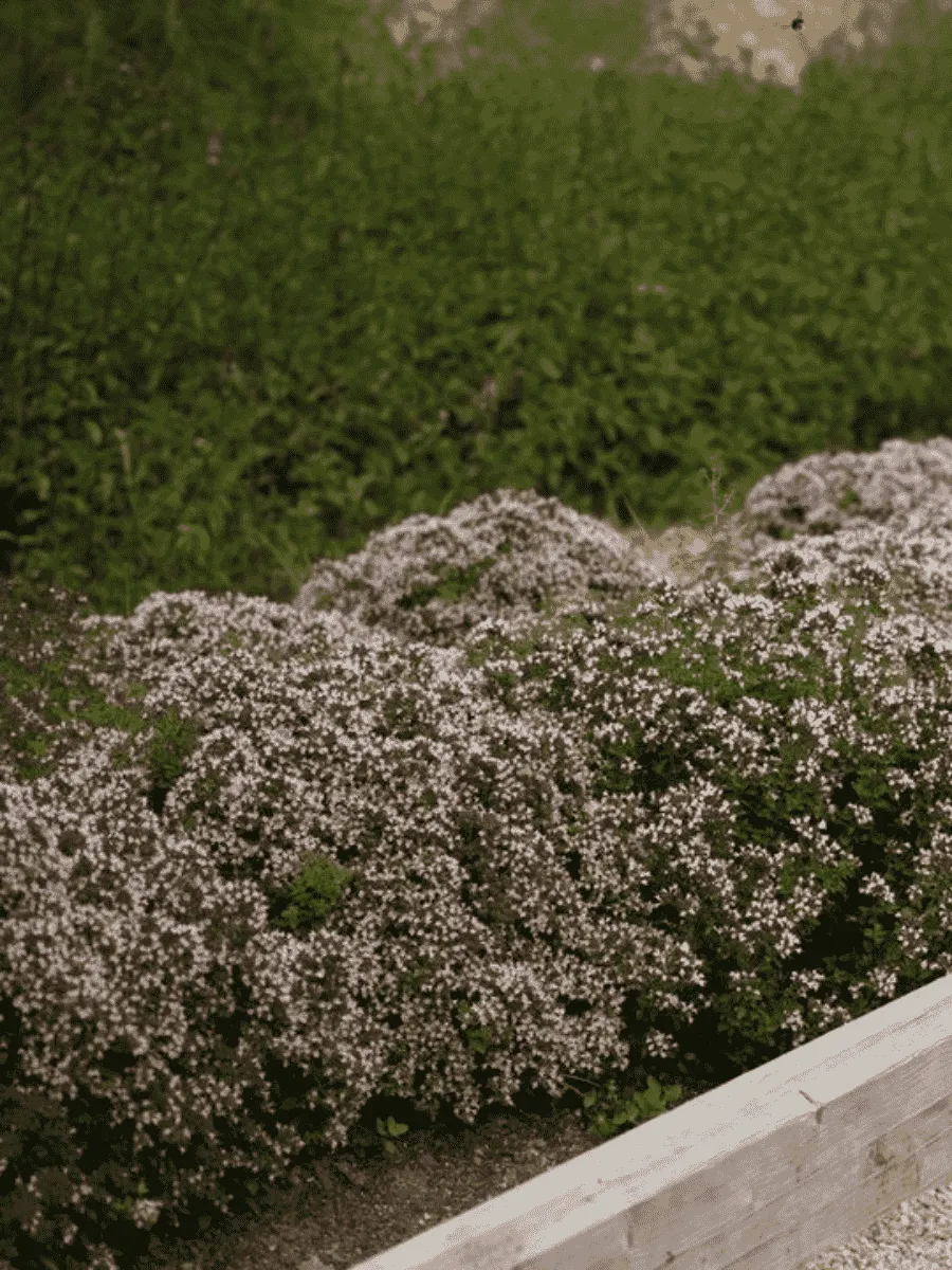 Тимьян обыкновенный сорта *Compact* — компактный вечнозелёный полукустарник высотой до 15–20 см, обладающий густым ветвящимся стеблем и плотной кроной, придающей растению аккуратную округлую форму. Листья мелкие, овально-ланцетной формы, тёмно-зелёного цвета с лёгким серебристо-серым оттенком, покрытые нежным пушком, источают приятный ароматический запах даже при легчайшем прикосновении. Цветки небольшие, собраны в плотные соцветия-шапочки нежно-лилового оттенка, украшающие растение летом пышным облаком аромата и красоты. Растёт медленно, предпочитая солнечные места и хорошо дренированные почвы, легко переносит засуху благодаря мощному корневищу и устойчив к низким температурам, сохраняя декоративность круглый год.
