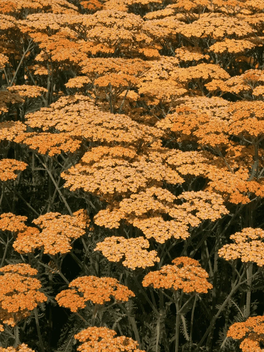 Тысячелистник обыкновенный Terracotta — травянистое многолетнее растение семейства астровых (Asteraceae), покорившее сердца садоводов своей неприхотливостью и декоративностью. Стебли прямостоячие, крепкие, густо покрыты мелкими листьями насыщенного зелёного цвета, рассечёнными на узенькие сегменты, словно тонкие иглы, придающие растению особую воздушность и лёгкость. Цветки собраны в многочисленные корзинки диаметром около сантиметра, окрашены в тёплые терракотовые оттенки от светло-оранжевого до тёмно-коричневого, создавая живописную палитру оттенков осени даже летом. Соцветия располагаются компактно, формируя плотные шапки, привлекающие внимание своей изысканной простотой и природной элегантностью. Растёт тысячелистник быстро, легко размножается делением куста и семенами, прекрасно адаптируется к различным условиям произрастания, предпочитая солнечные места и умеренно плодородные почвы. Благодаря своему привлекательному внешнему виду и способности долго сохранять свежесть срезанных цветов, тысячелистник Terracotta стал незаменимым элементом садового дизайна, украшая клумбы и бордюры яркими красками вплоть до поздней осени.