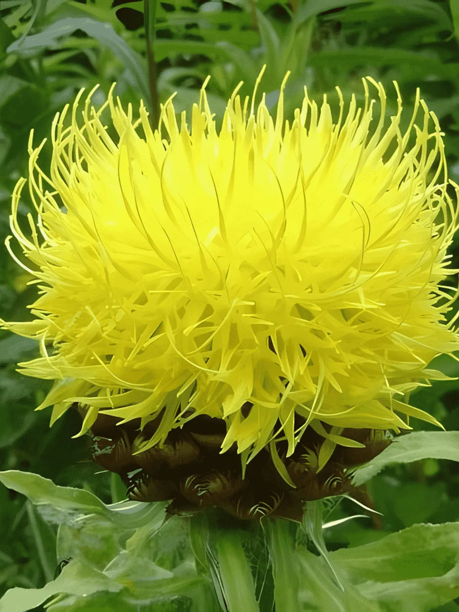 Василёк крупноголовый сорта *Deep Yellow* представляет собой эффектную травянистую культуру с мощной корневой системой и крепким прямостоячим стеблем высотой до метра, украшенным крупными соцветиями-корзинками насыщенного золотисто-жёлтого цвета диаметром около десяти сантиметров. Листья крупные, сердцевидные, слегка шероховатые, тёмно-зелёного оттенка, расположены очередно вдоль всего стебля, придавая растению особую декоративность даже вне периода цветения. Цветёт обильно и продолжительно, начиная с июня и заканчивая первыми заморозками, привлекая внимание яркими солнечными оттенками и создавая живописные акценты в садах и парковых композициях. Предпочитает солнечные участки с плодородной рыхлой почвой, устойчив к засухе и холоду, легко размножается семенами и вегетативно, быстро формируя густые куртины и становясь украшением любого ландшафта.