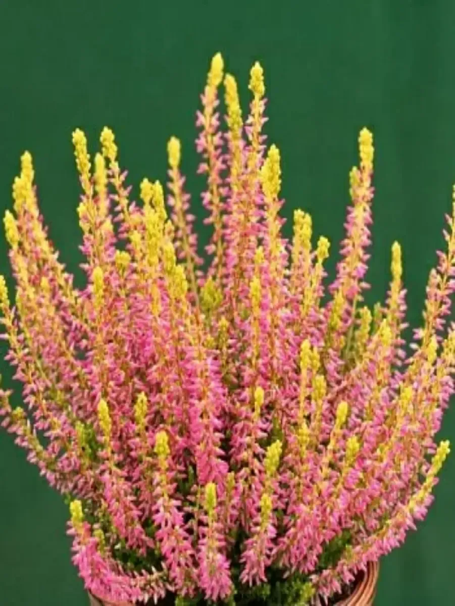 Вереск обыкновенный сорта *Golden Angie* — очаровательное вечнозелёное растение семейства вересковых, покоряющее сердца садоводов своей изысканной красотой и неприхотливостью. Этот компактный кустарник достигает высоты около полуметра, обладая густой кроной и тонкими побегами, покрытыми мелкими листьями изумрудной окраски, приобретающими золотисто-жёлтый оттенок весной и летом, особенно ярко проявляющийся на солнце. Цветёт обильно и продолжительно, начиная с июля до глубокой осени, покрываясь нежнейшими колокольчатыми цветами лилово-розового оттенка, собранными в небольшие соцветия, придающие растению особую воздушность и лёгкость. Предпочитает солнечные места и хорошо дренированные почвы, легко адаптируется к суровым климатическим условиям, устойчив к засухе и морозу, создавая живописную картину даже зимой благодаря сохраняющейся яркой зелени. Идеален для альпинариев, рокариев и миксбордеров, где подчёркивает свою природную элегантность и утончённость.