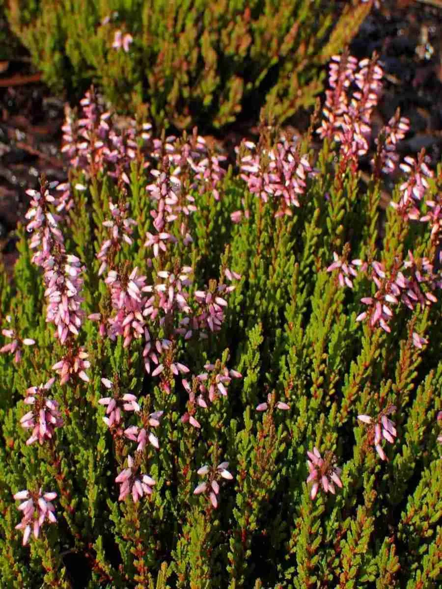 Вереск обыкновенный сорта *Pink Angie* — очаровательное вечнозелёное растение семейства вересковых, покоряющее сердца садоводов нежностью своего облика и неприхотливостью характера. Этот невысокий кустарник достигает всего лишь полуметра высоты, обладая густой кроной, состоящей из тонких веточек, покрытых мелкими тёмно-зелёными листьями игловидной формы, словно миниатюрные стрелки, устремлённые вверх. Цветёт обильно и продолжительно, начиная с конца июля до глубокой осени, покрываясь множеством мелких цветков нежно-розового оттенка, собранных в живописные кистевидные соцветия, придающие растению особую воздушность и лёгкость. Предпочитает солнечные места и хорошо дренированные почвы, легко адаптируется к суровым климатическим условиям, демонстрируя стойкость перед холодами и засухой. Благодаря своей декоративности и выносливости широко используется в ландшафтном дизайне, украшая альпийские горки, рокарии и миксбордеры, создавая атмосферу спокойствия и гармонии.