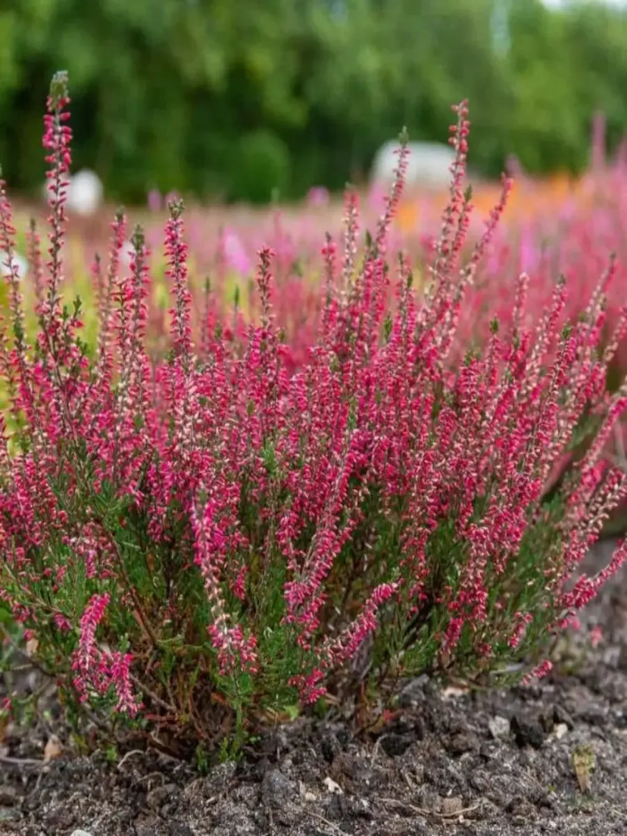 Вереск обыкновенный Selma — невысокий вечнозелёный кустарник, покоряющий сердца своей скромной красотой и удивительной выносливостью. Его тонкие побеги густо покрыты мелкими кожистыми листьями тёмно-зелёного цвета, придающими растению благородную строгость даже зимой. Цветёт вереск обильно и продолжительно, покрываясь нежнейшими кистями мелких цветков розово-лиловой окраски, словно облачённых в лёгкую дымку. Эти цветы источают тонкий аромат, привлекающий насекомых-опылителей и наполняющий воздух волшебством тихих лесных уголков. Растение предпочитает сухие песчаные почвы и солнечные места, распространено преимущественно в северных регионах Европы, где образует живописные заросли, украшая собой пустоши и лесные поляны.