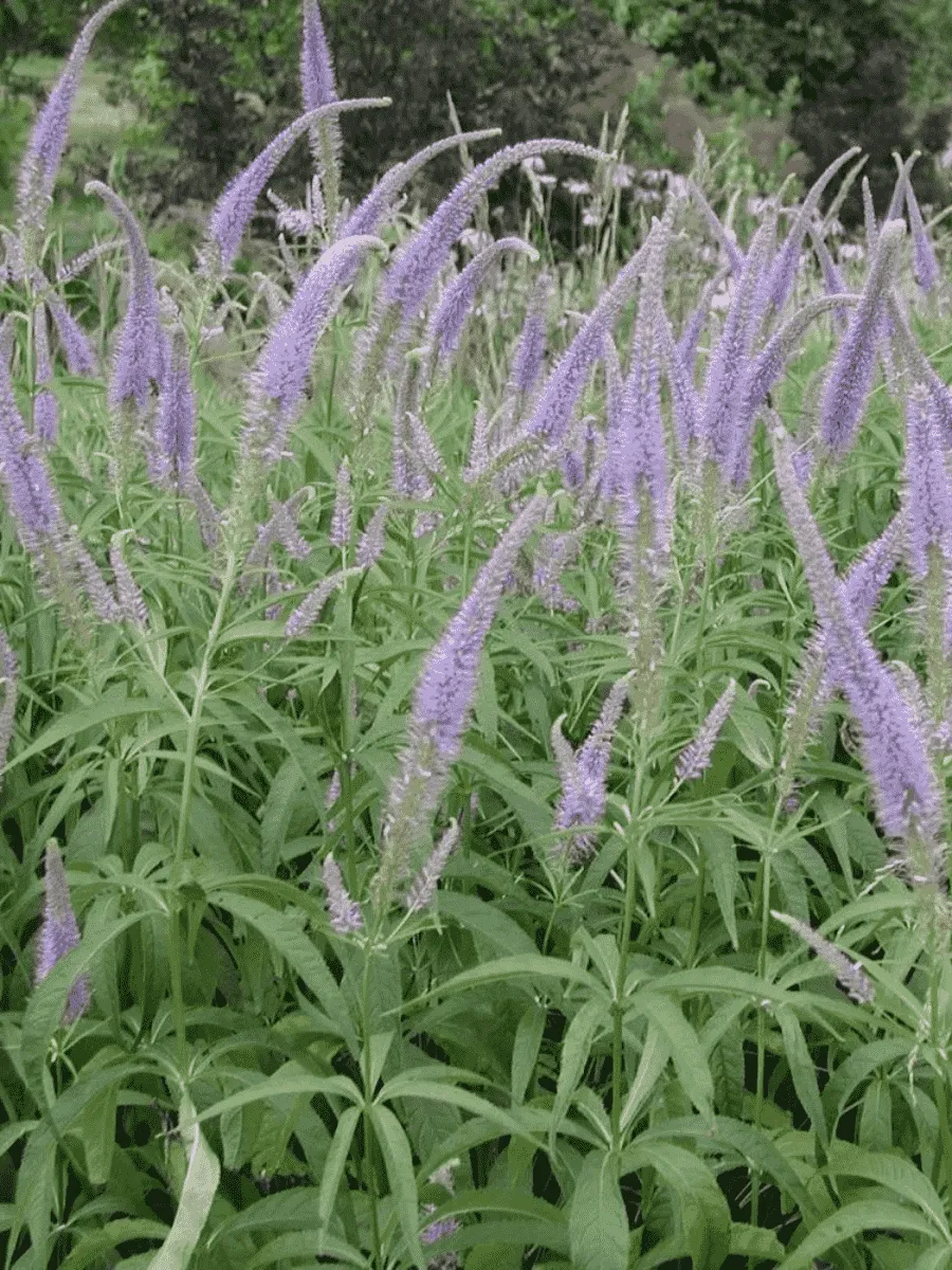 Веронникаструм Виргинский сорта *Temptation* пленяет взор стройностью своего облика и благородством форм. Это многолетнее растение достигает высоты до полутора метров, обладая прямостоячими прочными стеблями, покрытыми узкими ланцетными листьями насыщенного зелёного цвета, слегка блестящими от воскового налёта. Листья расположены супротивно, создавая гармоничную симметрию и подчёркивая вертикальность композиции. Цветёт веронникаструм обильно и продолжительно, начиная с июля и заканчивая сентябрём, раскрывая многочисленные соцветия-метёлки длиной около двадцати сантиметров, состоящие из мелких трубчатых цветков нежной лавандово-голубой окраски. Эти цветы словно сотканы из прозрачной ткани, переливающейся оттенками синего и фиолетового, привлекая внимание своей изысканной простотой и воздушностью. Растение предпочитает солнечные места и плодородные почвы, прекрасно адаптируется к различным климатическим условиям и широко используется в ландшафтном дизайне благодаря своему элегантному внешнему виду и способности создавать живописные акценты в саду.