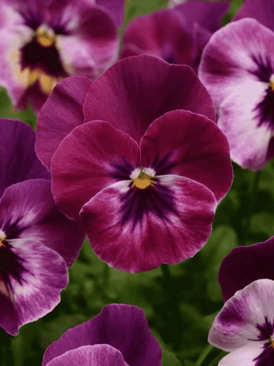 Виола рогатая сорта *Sorbet Raspberry* пленяет взор нежностью своего облика и утончённостью форм. Это компактное травянистое растение высотой около 15–20 см обладает плотными тёмно-зелёными листьями сердцевидной формы с волнистыми краями, словно вырезанными искусной рукой мастера. Цветки крупные, диаметром до 4 см, окрашены в насыщенный малиновый оттенок с едва заметным пурпурным отливом, украшенные тонкими белыми штрихами, придающими особую изысканность. Бутоны раскрываются постепенно, демонстрируя свою красоту продолжительное время, начиная с ранней весны и вплоть до поздней осени. Растёт виола быстро, легко размножается самосевом, создавая живописные островки среди садовых композиций, радуя глаз своей элегантностью и свежестью красок.