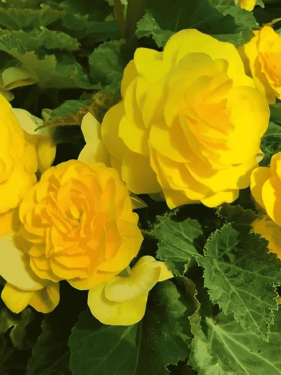 Бегония клубневая сорта *GO! Early Yellow* пленяет взор нежностью золотисто-жёлтых цветков, распускающихся ранним летом на фоне эффектной листвы. Листья крупные, сердцевидные, бархатистые, словно покрытые тонким слоем пудры, украшены контрастными прожилками тёмно-зелёного оттенка. Цветки собраны в пышные соцветия, состоящие из множества мелких бутонов, раскрывающих лепестки, похожие на солнечные лучи, сияющие среди зелени. Растение компактное, кустистое, идеально подходит для контейнерного выращивания и оформления клумб, радуя глаз своей изысканной декоративностью до наступления первых осенних холодов.
