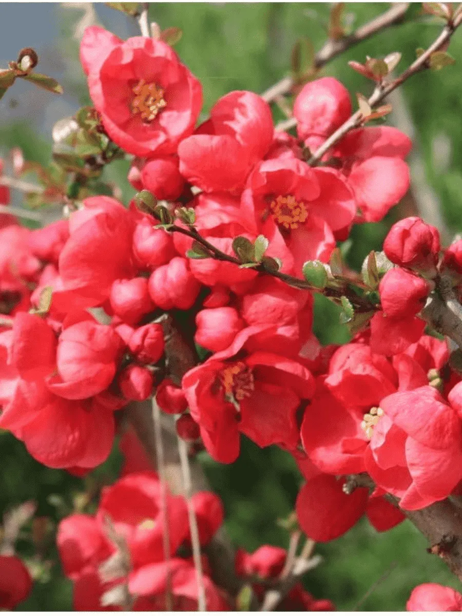 Айва превосходная сорта *Red Trail* представляет собой компактную декоративную кустарниковую культуру высотой до полутора метров с раскидистой кроной и густой листвой насыщенного зелёного цвета, слегка блестящей сверху и матово-сизоватой снизу. Листья яйцевидные, крупные, зубчатые по краю, придают растению особую пышность и свежесть облика. Цветёт обильно крупными одиночными цветами диаметром около пяти сантиметров, распускающимися одновременно с появлением молодых листочков весной. Лепестки цветков ярко-красные, бархатистые, контрастируют с золотисто-жёлтыми тычинками, создавая эффектное зрелище. Растение отличается устойчивостью к неблагоприятным условиям среды, хорошо переносит обрезку и стрижку, легко адаптируется к различным типам почв и освещённости, широко используется в ландшафтном дизайне благодаря своей красоте и неприхотливости.