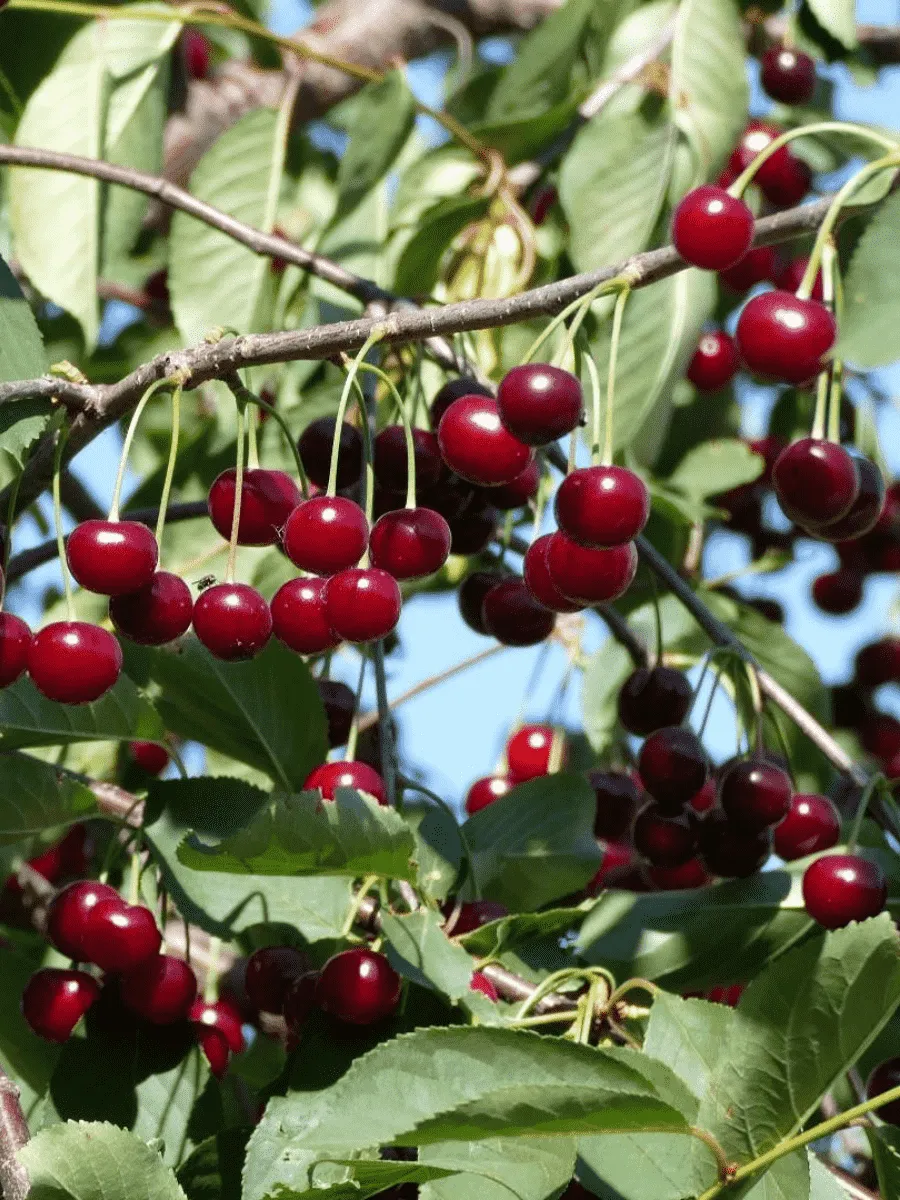 Черешня Тютчевка — дерево средней высоты с раскидистой кроной, ветви которой устремляются вверх, словно стремясь коснуться небесной синевы. Листья овально-заострённые, гладко очерченные, насыщенно-зелёного цвета, слегка блестящие от солнечного света, придают растению особую элегантность и благородство облика. Цветёт обильно и пышно, покрываясь нежнейшими белыми цветами, собранными в небольшие кисти, источающими тонкий аромат весны. Бутоны раскрываются постепенно, создавая впечатление медленно распускающегося букета, украшающего садовый пейзаж. Растение предпочитает плодородную почву и солнечное местоположение, хорошо переносит умеренный климат, демонстрируя устойчивость к болезням и способность радовать глаз своей красотой долгие годы.