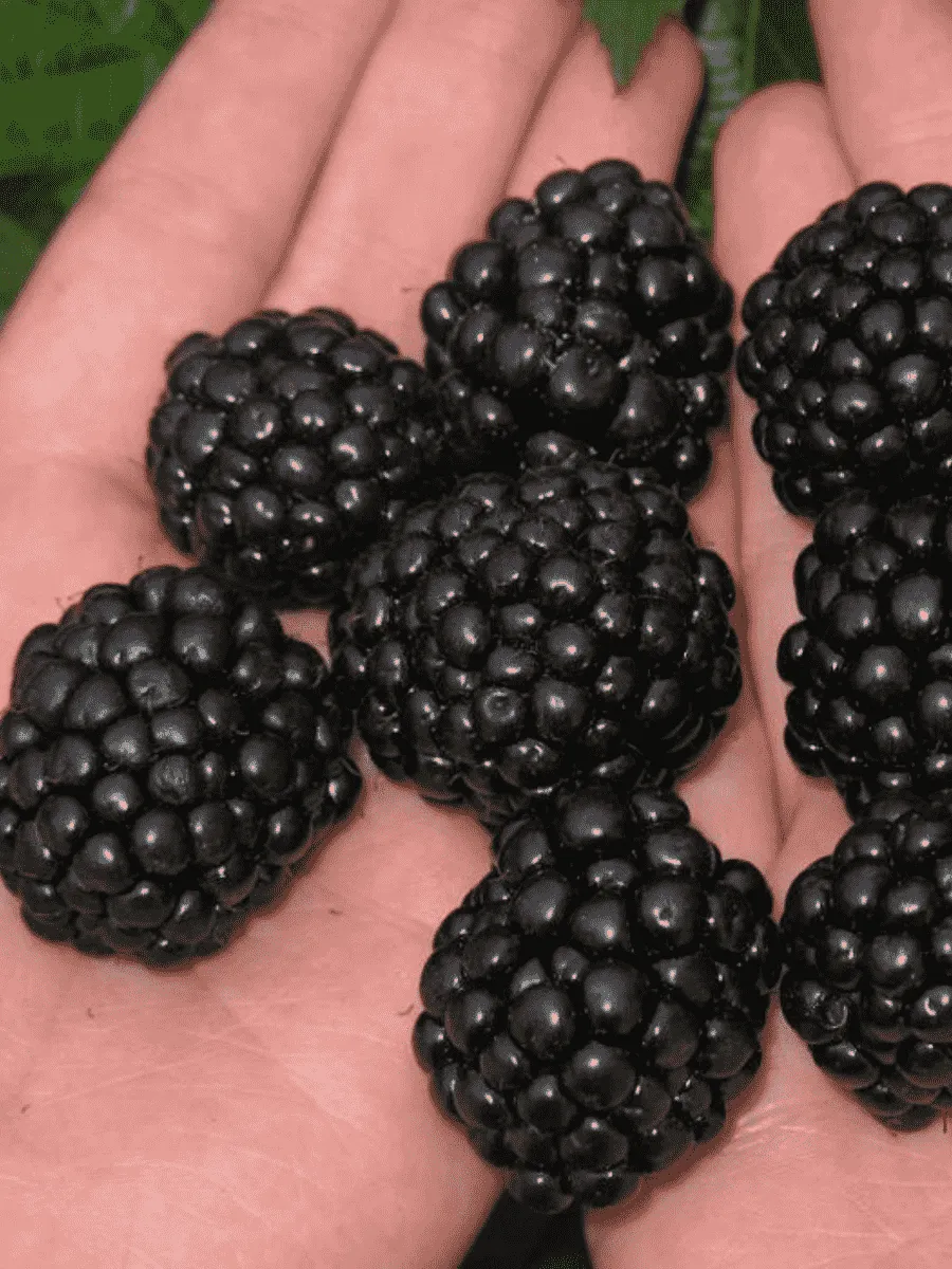 Ежевика садовая сорта *Jumbo* представляет собой мощную полувьющуюся кустарниковую лиану с гибкими побегами длиной до трёх метров, покрытыми мелкими шипиками и густым восковым налётом, придающим стеблям благородный сизый оттенок. Листья крупные, тёмно-зелёные, пятилопастные, слегка морщинистые, с чётко выраженными жилками и зубчатым краем, создают плотную ажурную крону, привлекающую внимание своей декоративностью даже вне периода цветения. Цветки белые, диаметром около двух сантиметров, собраны в небольшие кисти, распускаются обильно и продолжительно, наполняя воздух тонким ароматом, способствующим привлечению насекомых-опылителей. Растёт быстро, легко укореняется отводками и черенками, отличается высокой зимостойкостью и устойчивостью к болезням, прекрасно адаптируется к различным типам почв и условиям освещённости, предпочитая солнечные места с плодородной почвой и умеренным поливом.