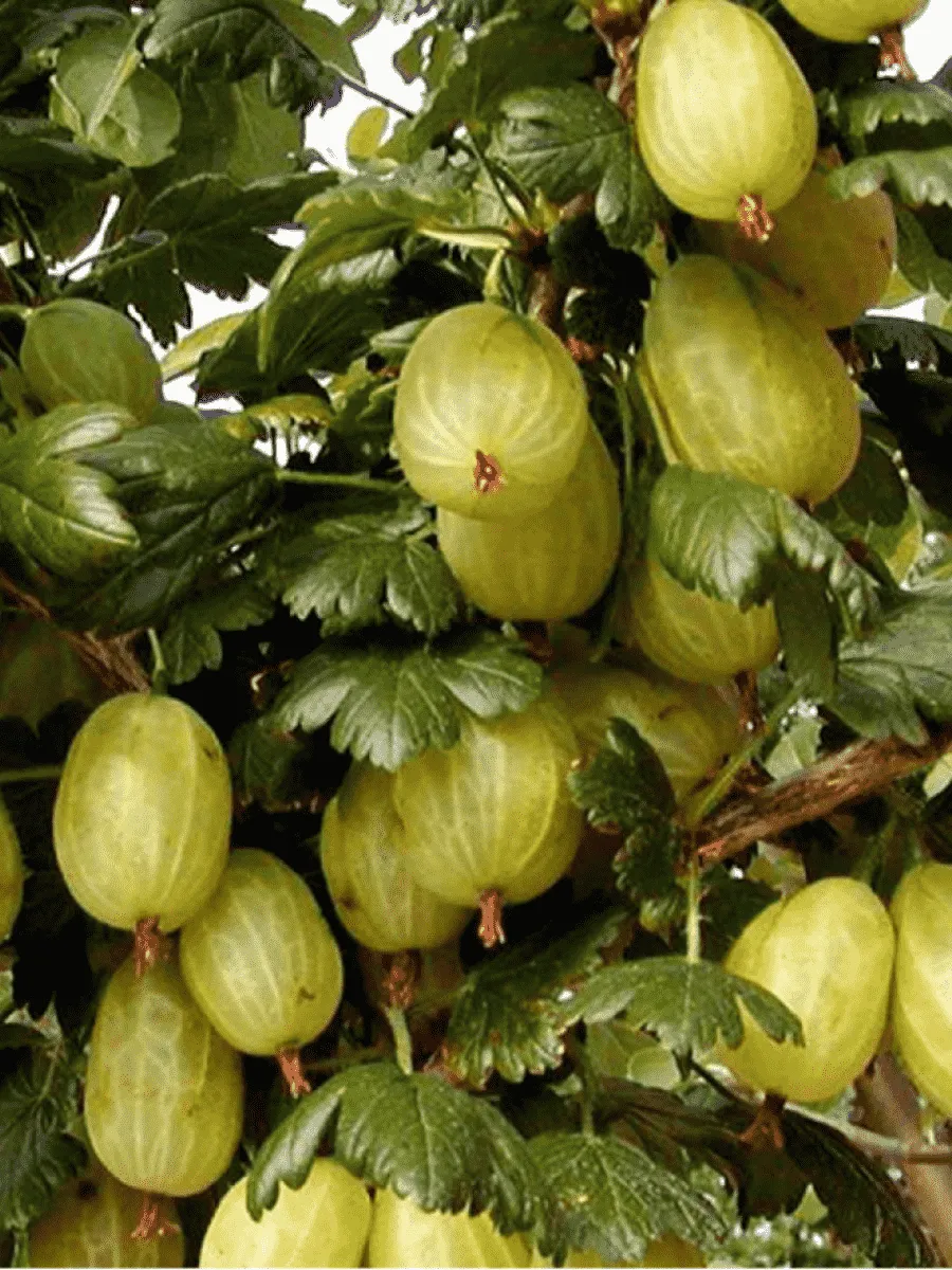 Крыжовник обыкновенный сорта *Invicta*, выращиваемый на штамбовой форме, представляет собой элегантное деревце высотой до полутора метров с раскидистой кроной и стройным прямым стволом, покрытым гладкой серо-коричневой корой. Листья крупные, округло-яйцевидные, слегка морщинистые, насыщенно-зелёной окраски с лёгким серебристым отливом, края зубчатые, придающие растению декоративность даже вне периода цветения. Цветки мелкие, колокольчатой формы, нежно-розовые или кремово-белые, собраны в небольшие кисти, источают тонкий аромат, привлекающий насекомых-опылителей. Растёт быстро, устойчив к болезням и неблагоприятным условиям среды, хорошо переносит обрезку и формовку кроны. Предпочитает солнечные места, плодородную почву, умеренно влажную среду обитания, легко адаптируется к различным климатическим зонам умеренного пояса Евразии.
