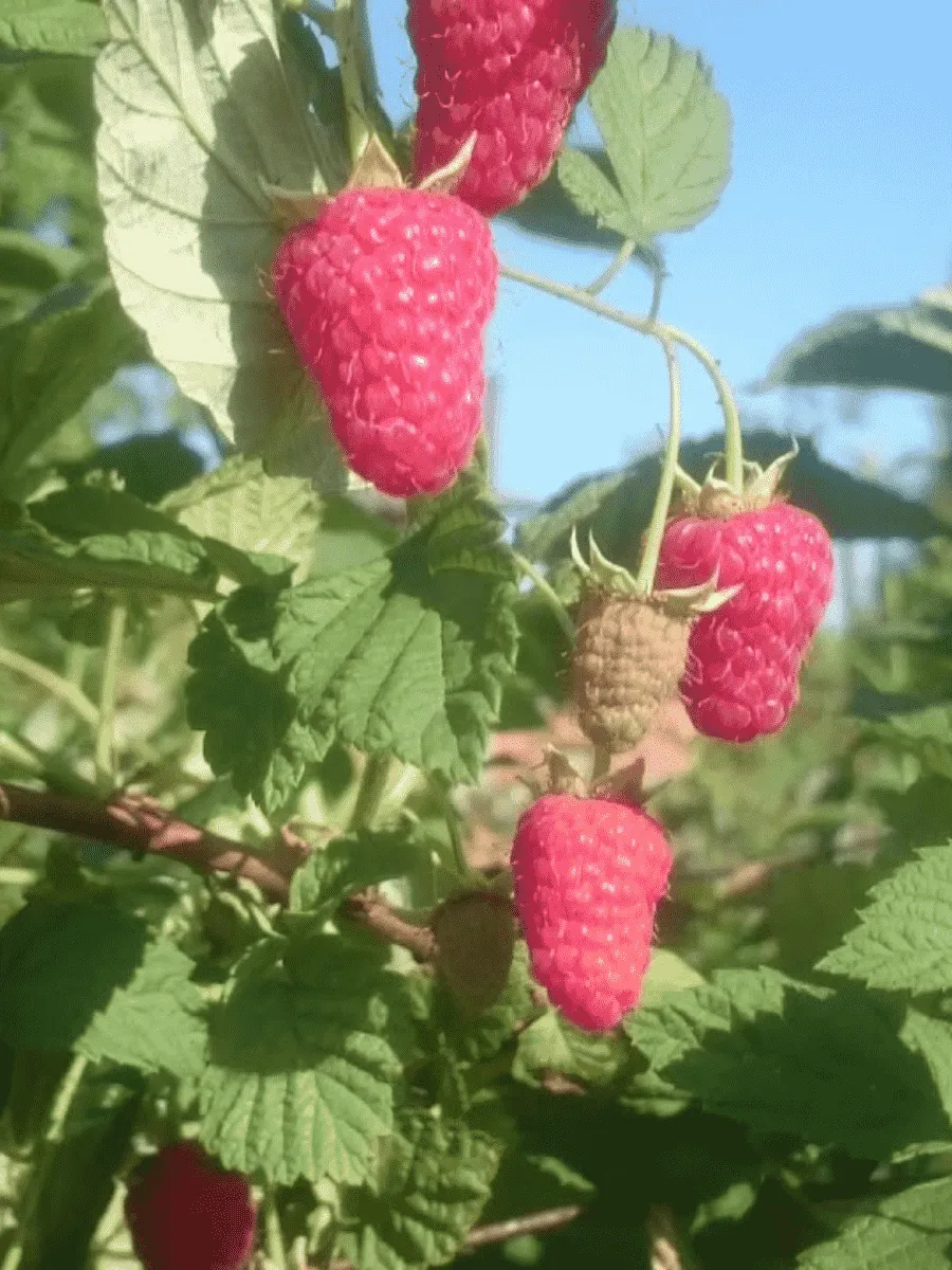 Малина обыкновенная Радзиева (Rubus idaeus L.) — многолетний кустарник семейства Розовые, высотой от одного до двух метров, обладающий тонким ароматом и нежной красотой. Стебли прямостоячие, покрытые мелкими шипиками, придающими растению особую грациозность. Листья крупные, ярко-зелёные, слегка морщинистые, состоящие из пяти-семи листочков, каждый из которых имеет зубчатую кромку и бархатистое покрытие снизу, словно облачённые в мягкую ткань природы. Цветки белые, небольшие, собраны в рыхлые кисти, распускаются в мае-июне, источая тонкий аромат, привлекающий насекомых-опылителей. Растёт преимущественно в лесах средней полосы России, предпочитая влажные тенистые места вдоль рек и ручьёв, где её тонкие ветви свободно свисают над водой, создавая живописную картину лесной жизни.