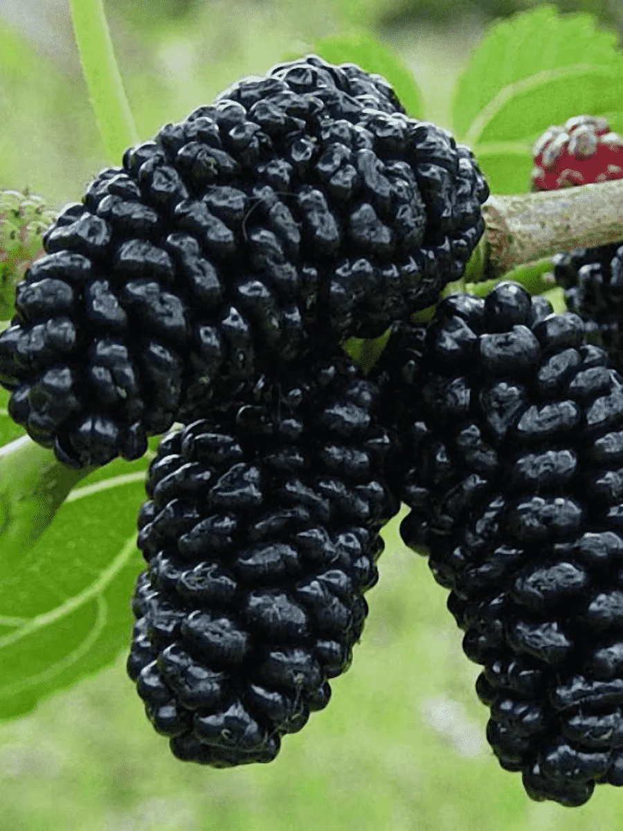 Шелковица чёрная — величественное дерево с раскидистой кроной и мощным стволом, покрытым тёмной корой, испещрённой глубокими трещинами и бороздами, придающими ей благородную суровую красоту. Листья крупные, сердцевидные, слегка шероховатые, насыщенно-зелёного цвета, украшенные волнистым краем и чётко выраженными жилками, словно искусно вырезанные рукой мастера. Цветки мелкие, невзрачные, собраны в короткие серёжки, едва заметные среди густой листвы, однако именно они дарят жизнь будущим сочным ягодам. Дерево предпочитает плодородные почвы и солнечные места, широко распространено в южных регионах Европы и Азии, где оно образует живописные аллеи и тенистые сады, радуя глаз своей пышностью и грациозностью.