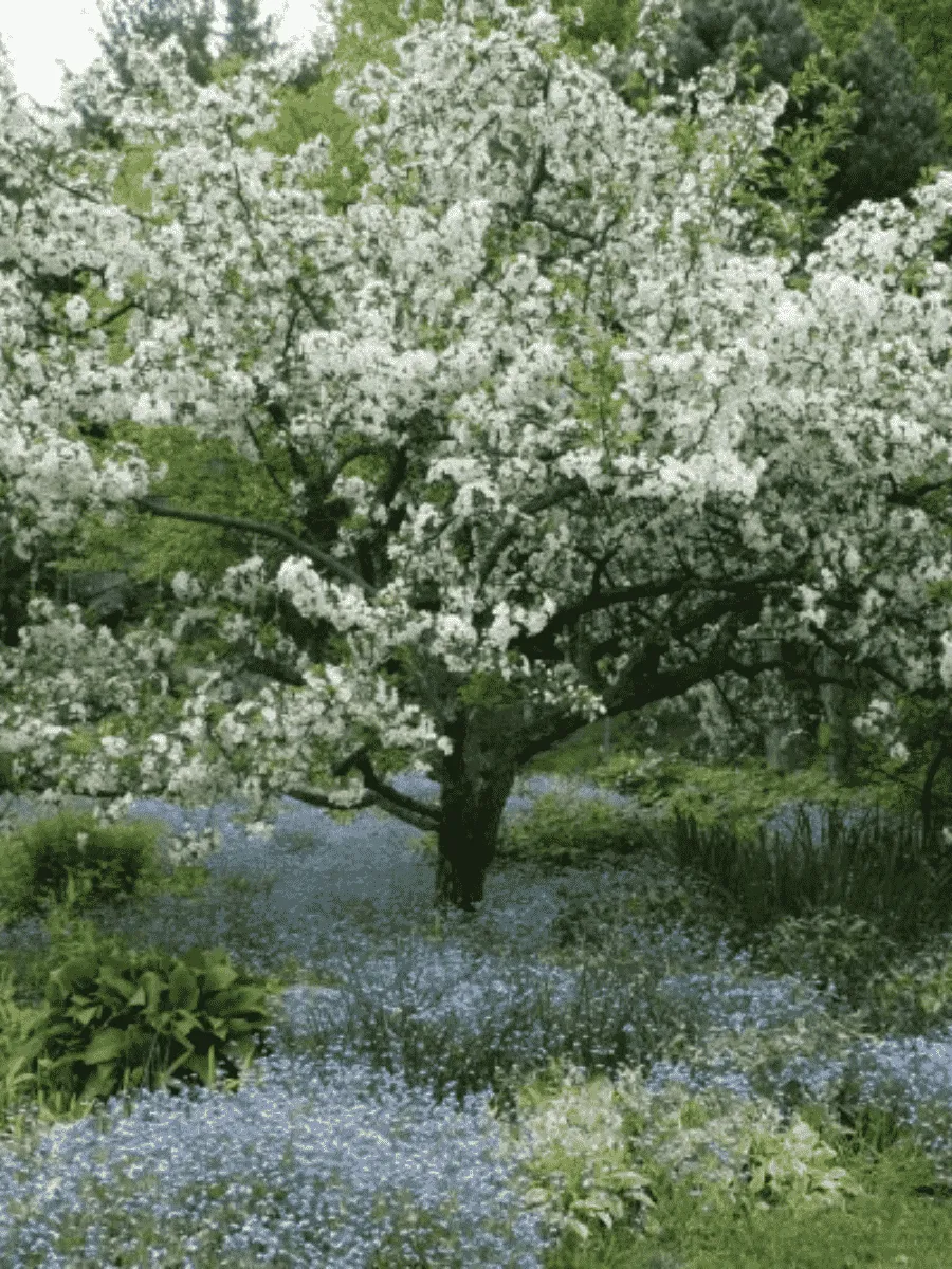 Декоративная яблоня сорта *Tina* пленяет взор своей утончённой красотой и элегантностью форм. Это компактное дерево высотой до трёх метров обладает густой округлой кроной, состоящей из мелких тёмно-зелёных блестящих листочков, слегка гофрированных по краям, придающих растению особую воздушность и лёгкость. Весной оно покрывается пышным облаком нежнейших розово-белых цветков диаметром около двух сантиметров, собранных в небольшие соцветия, источающих тонкий аромат, привлекающий пчёл и бабочек. Цветение продолжается две-три недели, превращаясь в настоящее зрелище, украшающее сады и парки. Растёт медленно, предпочитая солнечные места и плодородную почву, устойчива к городским условиям и зимостойка, прекрасно переносит стрижку и формирование кроны. Благодаря своим миниатюрным размерам и привлекательному облику идеально подходит для небольших садов, рокариев и контейнерного озеленения.