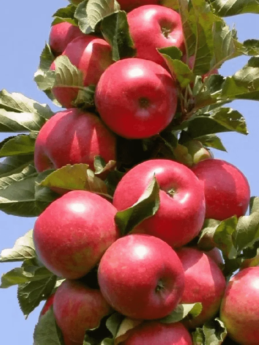Колоновидная яблоня сорта «Московское ожерелье», словно стройная колонна, устремляется вверх, поражая своей компактностью и элегантной формой кроны. Её ветви расположены строго вертикально, создавая иллюзию утончённого силуэта, украшенного изумрудной листвой. Листья небольшие, округло-овальные, слегка гофрированные по краям, обладают нежным блеском и насыщенным зелёным цветом, который летом приобретает лёгкий золотистый оттенок. Цветёт растение роскошно и обильно, покрываясь крупными бело-розовыми цветами, собранными в пышные соцветия, источающие тонкий аромат, привлекающий пчёл и восхищённый внимание садоводов. Рост колоновидной яблони сдержанный, ежегодный прирост составляет всего несколько сантиметров, благодаря чему она идеально подходит для небольших участков и декоративных композиций. Этот сорт отличается высокой зимостойкостью, устойчивостью к болезням и неприхотливостью в уходе, радуя глаз своим декоративным видом долгие годы.
