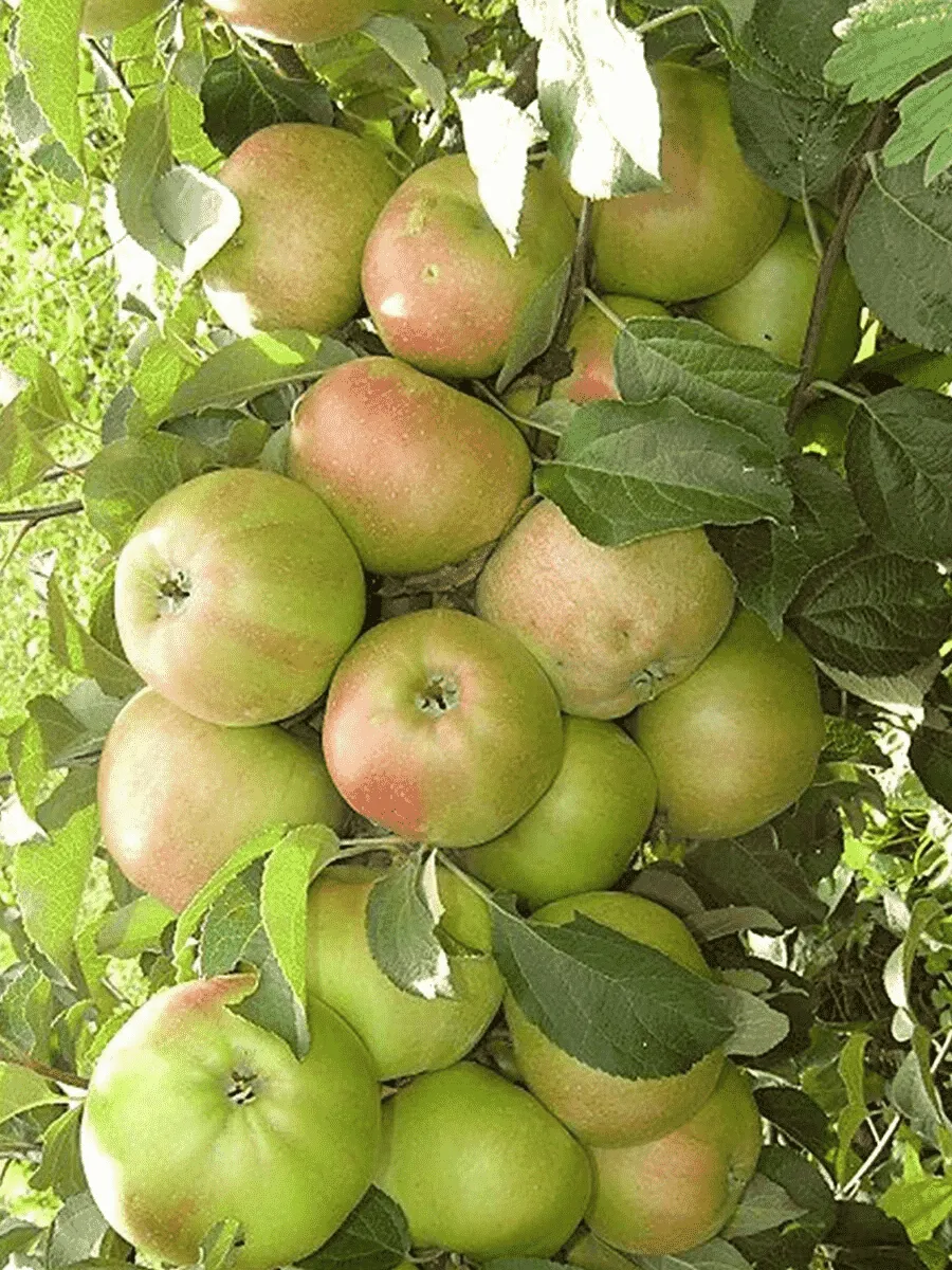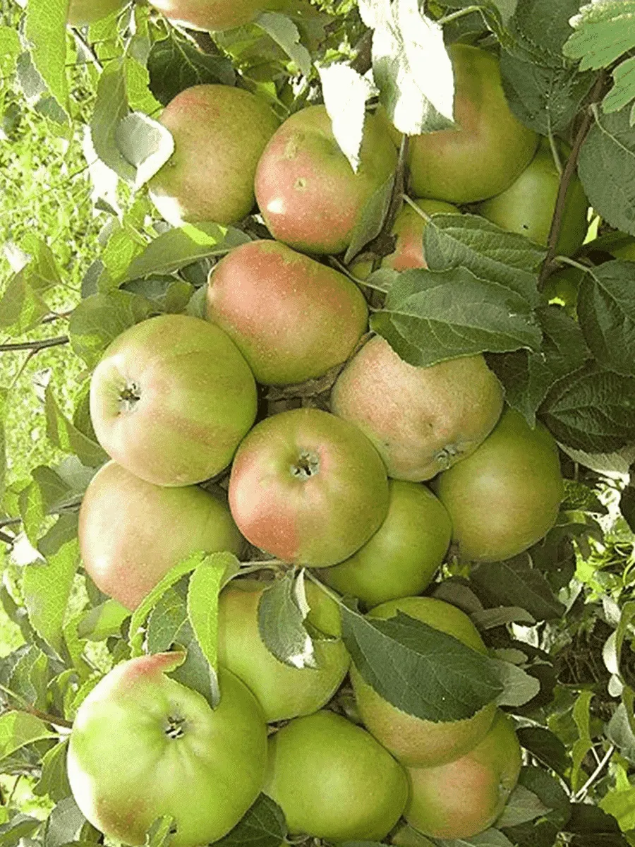 Колоновидная яблоня сорта «Янтарное ожерелье», словно стройная колонна, устремляется вверх, поражая своей компактностью и элегантной формой кроны. Её ветви расположены строго вертикально, создавая впечатление строгого архитектурного сооружения среди зелёных насаждений сада. Листья небольшие, округлые, насыщенно-зелёного цвета, слегка блестящие, будто покрытые тонким слоем воска, придают дереву особую свежесть и привлекательность даже вне периода цветения. Весной растение покрывается нежнейшими бело-розовыми цветами, собранными в аккуратные соцветия, источающими тонкий аромат, привлекающий пчёл и восхищающие взгляд садовода. Цветки крупные, чашевидные, лепестки тонкие, полупрозрачные, переливающиеся оттенками от нежно-кремового до розоватого, напоминают драгоценности, рассыпанные по ветвям дерева. Рост колоновидной яблони сдержанный, она идеально подходит для небольших участков, где каждый квадратный метр ценится особенно высоко. Благодаря своему декоративному виду и неприхотливости, сорт «Янтарное ожерелье» становится украшением любого сада, привнося в ландшафтную композицию гармонию и утончённую красоту природы.