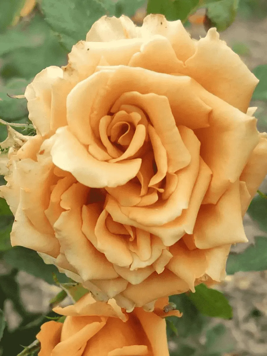 Чайно-гибридная роза сорта *Toffy* пленяет взор изысканным сочетанием нежности и благородства форм. Её крупные бутоны раскрываются постепенно, демонстрируя роскошь кремово-золотистых лепестков с едва уловимым медовым оттенком, словно покрытых тонким слоем карамельной глазури. Листья плотные, тёмно-зелёные, глянцевые, слегка волнистые по краям, подчёркивая контраст между насыщенной зеленью листвы и мягким сиянием цветков. Куст компактный, прямостоячий, достигает высоты около метра, украшая сад элегантностью своего облика и утончённым ароматом, который наполняет воздух сладостью летнего дня. Цветёт обильно и продолжительно, радуя взгляд практически всё лето до поздней осени, создавая атмосферу тепла и гармонии даже в прохладную погоду.