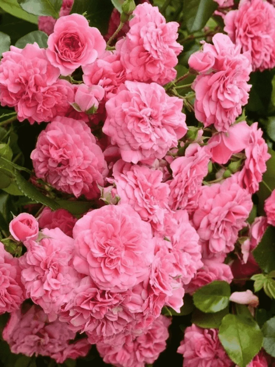 Роза почвопокровная сорта *Les Quatre Saisons* представляет собой элегантную стелющуюся розу с густо разветвлённым кустом высотой до полуметра и шириной около метра, способную быстро покрывать большие площади почвы своими гибкими побегами. Листья тёмно-зелёные, блестящие, состоят из пяти-семи овальных листочков с зубчатым краем, придающих растению благородный облик даже вне периода цветения. Цветки небольшие, диаметром примерно пять сантиметров, собраны в пышные соцветия, состоящие из множества бутонов, распускающихся постепенно один за другим, создавая эффект непрерывности цветения с весны до поздней осени. Лепестки нежной кремово-белой окраски украшены лёгким золотистым оттенком в центре цветка, придавая особую утончённость и воздушность всему облику розы. Благодаря своей неприхотливости, устойчивости к болезням и способности формировать плотный зелёный покров, этот сорт идеально подходит для украшения садов, парков и придорожных территорий, где создаёт живописные ковры, украшенные множеством очаровательных цветков.
