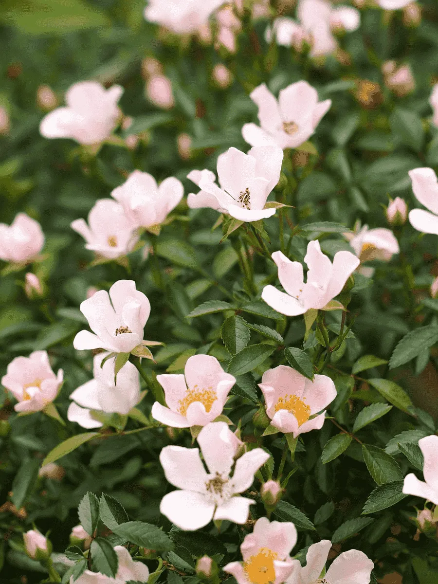 Роза почвопокровная **Nozomi** — очаровательное растение с нежной грацией и утончённой красотой, покоряющее сердца садоводов своей неприхотливостью и декоративностью. Её компактные побеги стелются густым ковром, покрываясь мелкими тёмно-зелёными листьями овальной формы с лёгким блеском и слегка зазубренными краями. Цветки розы Nozomi распускаются небольшими группами, создавая живописную картину пышного цветения. Лепестки нежно-розового оттенка постепенно светлеют от центра к краям, придавая соцветиям особую воздушность и очарование. Бутоны раскрываются медленно, демонстрируя свою прелесть на протяжении всего лета, радуя глаз непрерывным каскадом цветов. Растение отличается устойчивостью к болезням и неблагоприятным условиям среды, легко адаптируясь даже в суровых климатических зонах средней полосы России. Благодаря своим миниатюрным размерам и элегантному облику роза Nozomi идеально подходит для украшения альпийских горок, бордюров и каменистых садиков, привнося в ландшафт нотки изысканности и гармонии природы.